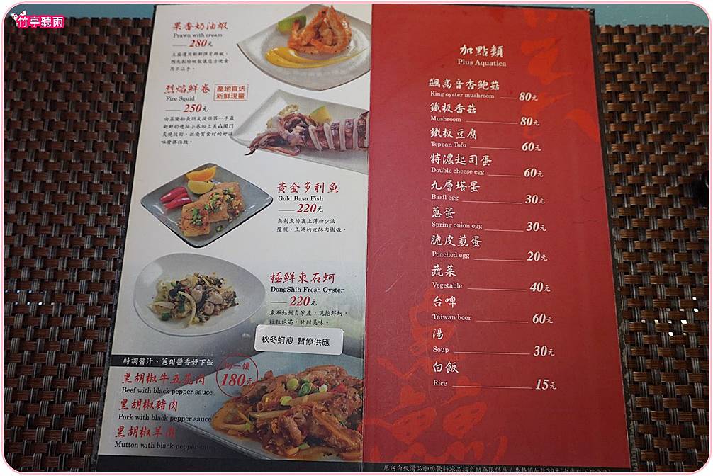 第二面菜單主要是海鮮主食,經濟款黑胡椒牛/豬/羊肉只要180元,適合小資族或學生。