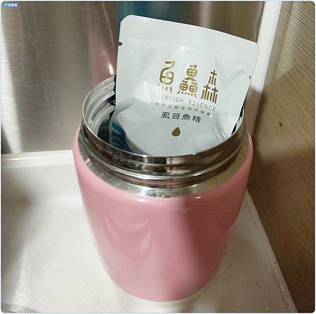 身為上班族,我最推薦馬克杯加熱法: 虱目魚精不拆封放在大馬克杯(或悶燒罐),注入熱水泡3分鐘即可,在辦公室也很方便操作,可即熱即喝。