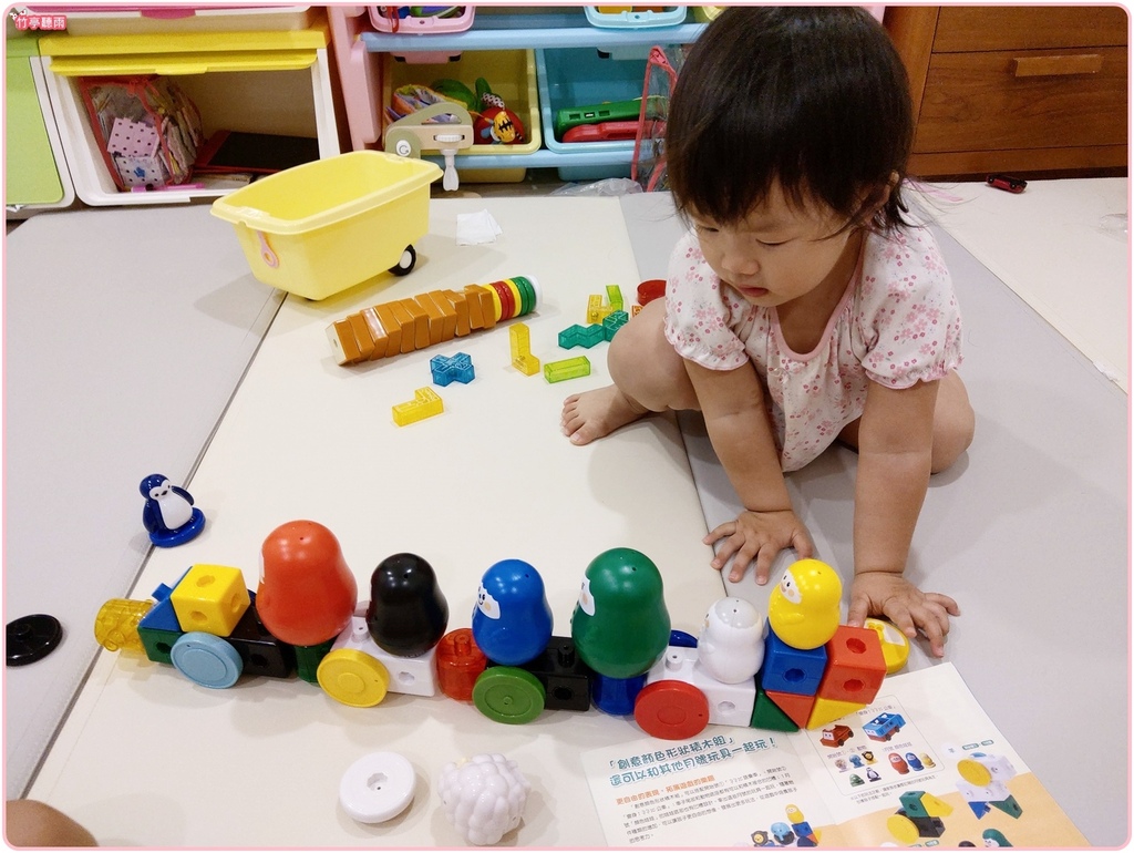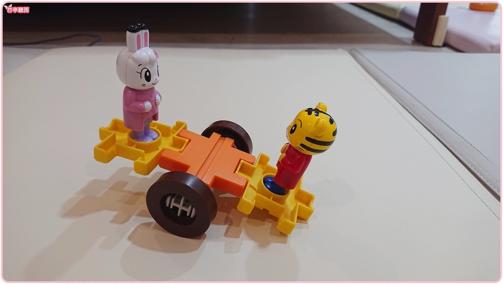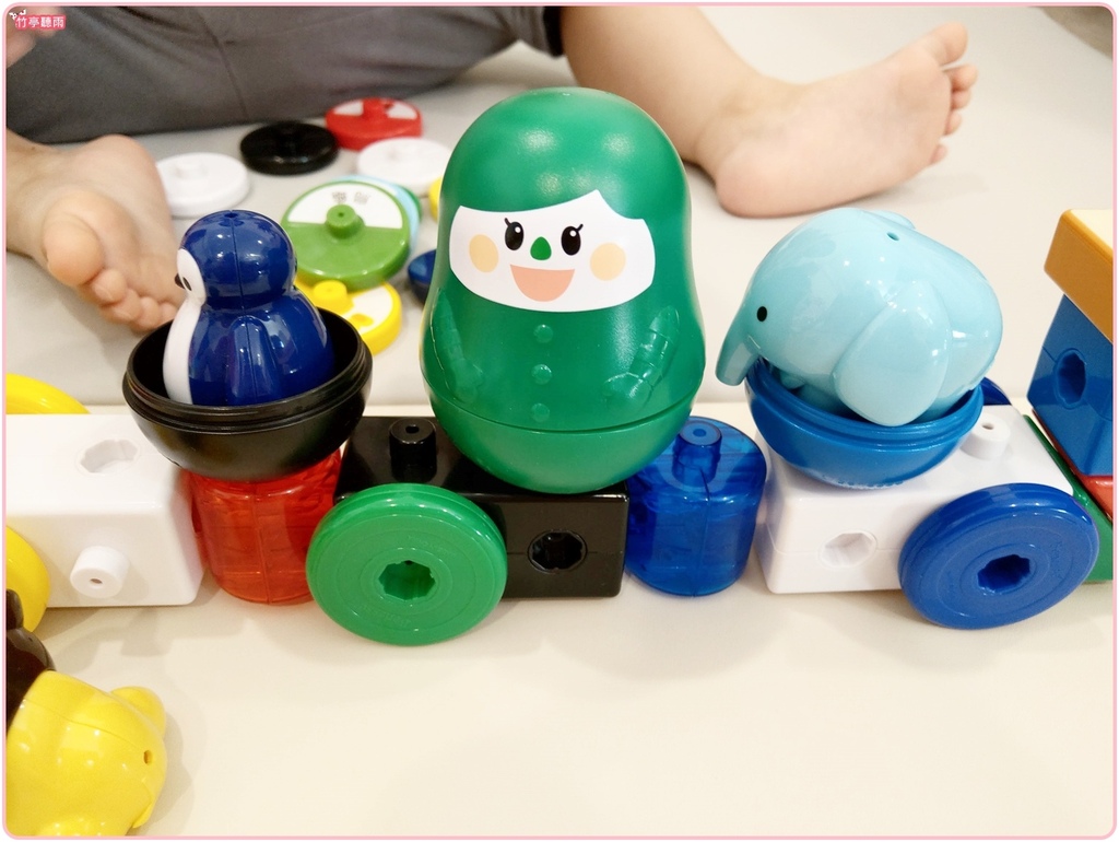 但如果是慣性車因為突起比較長,就比較難推成功。但邏輯創意巧拼組數量有限,所以也很難拼成多大的軌道XD