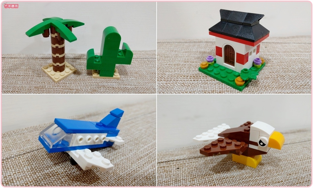 這組【LEGO 樂高】經典套裝 環遊世界11015可組合出世界各地的動植物、交通工具或建築主題(禿鷹、仙人掌、鸚鵡、鱷魚寶寶、虎鯨、獅子、棕櫚樹、長頸鹿、紅色巴士、袋鼠與袋鼠寶寶、棕熊、亞洲房屋、企鵝與企鵝寶寶、魚兒、帆船與飛機),可愛又簡單,可說是很適合4歲以上新手入門的樂高套組。