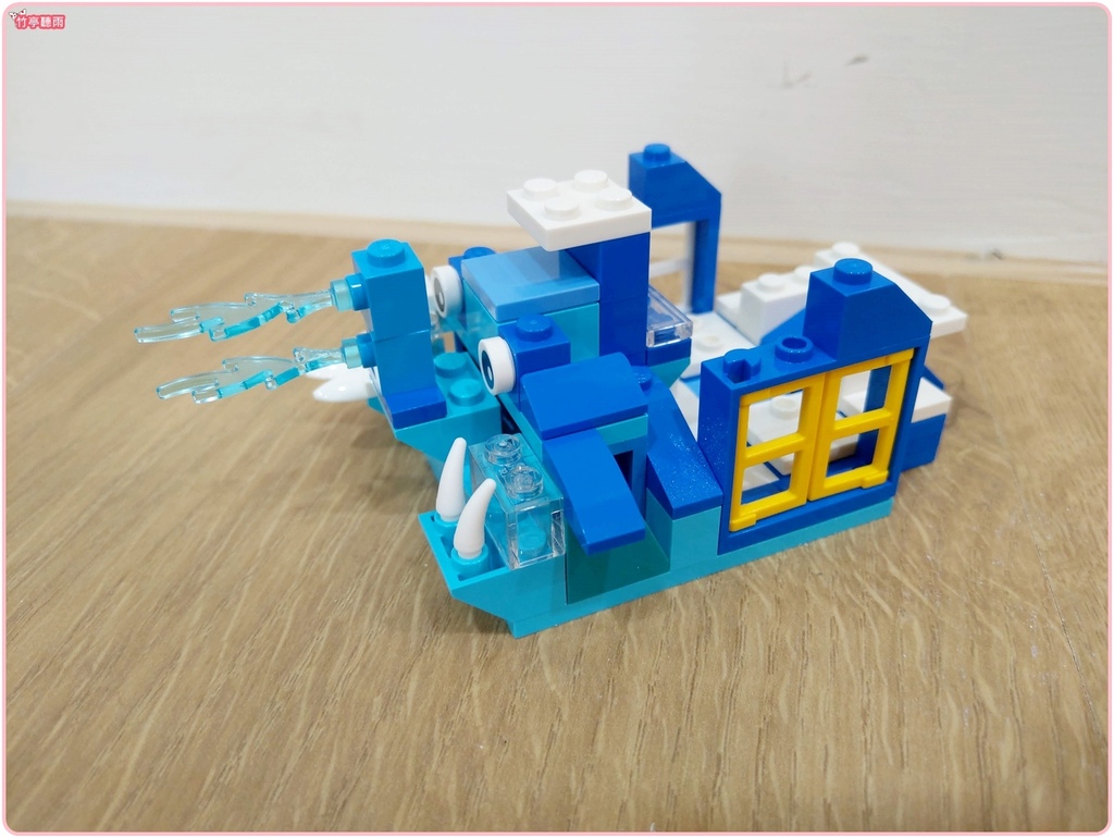 每次看著孩子自己運用想像力,將樂高積木組出各種不同造型與功能的東西,就覺得很有趣。
