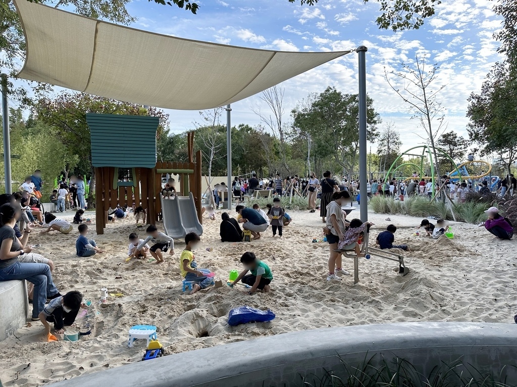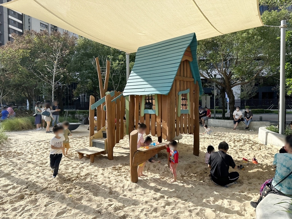沙坑區有扮家家小屋給孩子們玩,還有遮陽棚不過有點小。