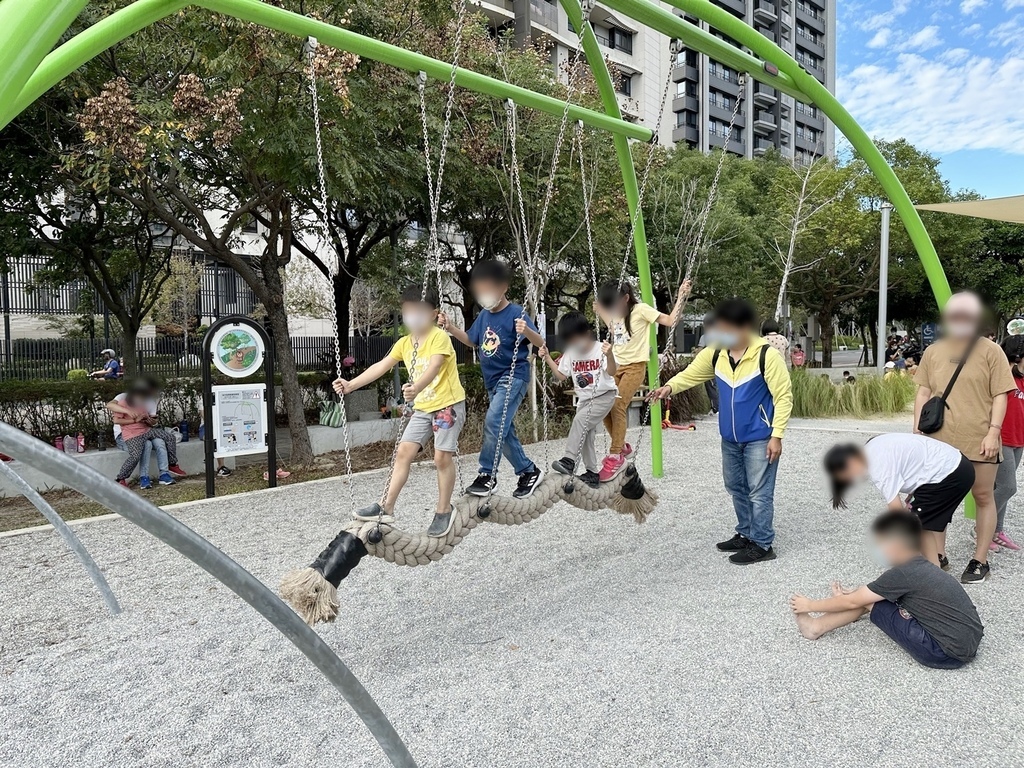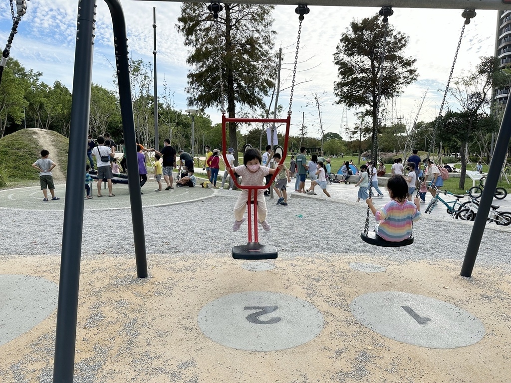 盪鞦韆有普通型(1人)、大人+小孩型(2人)與圓環型(最多7童),明明每座公園幾乎都有盪鞦韆,小孩們還是樂此不疲每次都要玩。