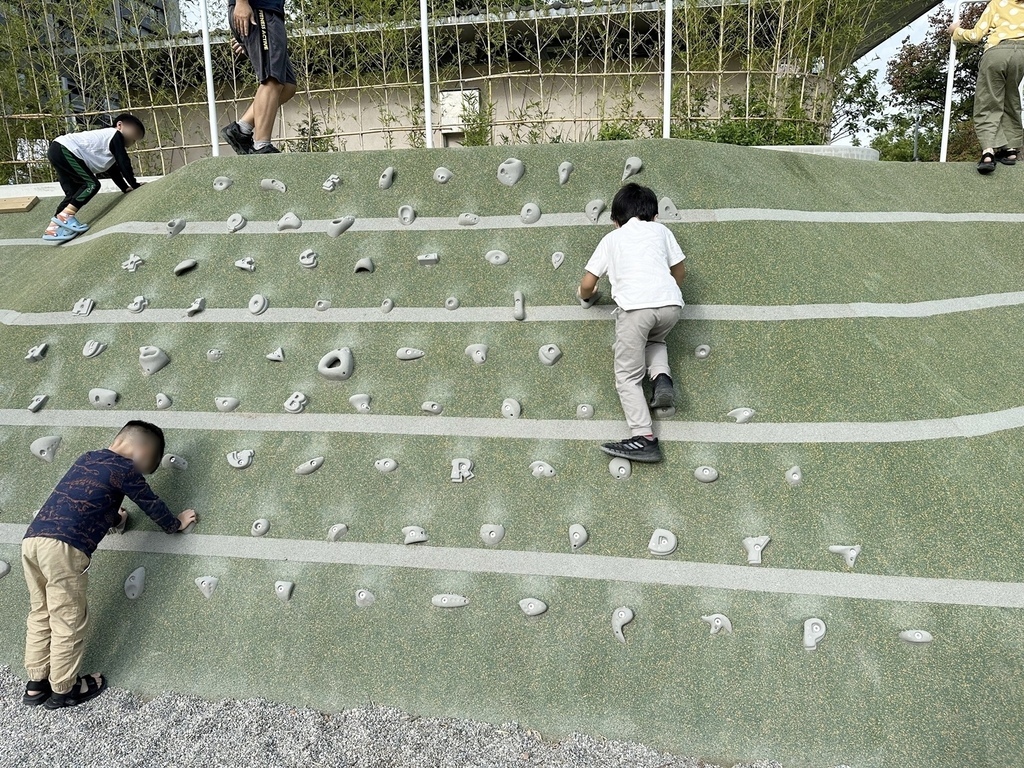 攀爬網難度大概適合小學中年級以上,還蠻有挑戰性的。