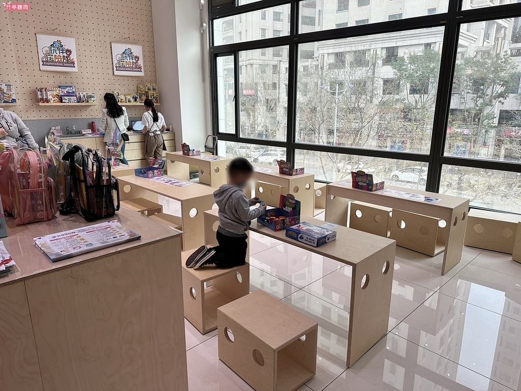 有別於一般的玩具店,孩子玩伴關埔門市規劃了最明亮的靠窗區為親子上課空間,有六套桌椅,一堂課可以容納六組親子。