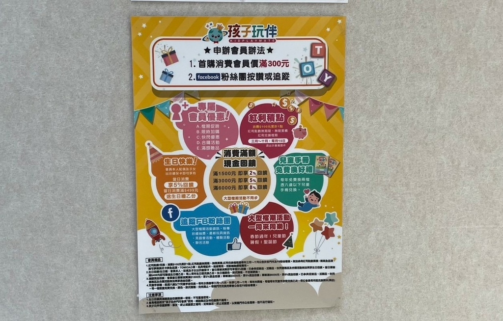 結帳的時候店員說消費滿300元可以免費辦會員,如果家裡有未滿6歲的小朋友,還有超好康的活動耶!