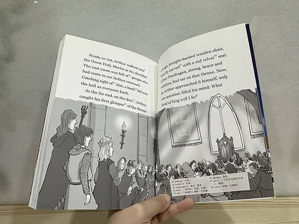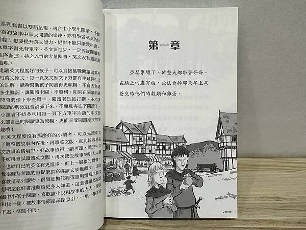 小宇宙出版的這套書將西洋文學傳說經典 - 亞瑟王分成十集適合小學中高年級與中學生的雙語讀本(前半本無注音中文/後半本英文),中文部分為全新翻譯,成語會以不同字體顯示,能增加國語文能力;英語原文部分搭配了外師有聲朗讀QR code與生僻單字的註解,方便閱讀時馬上查閱,減少查字典的困擾。