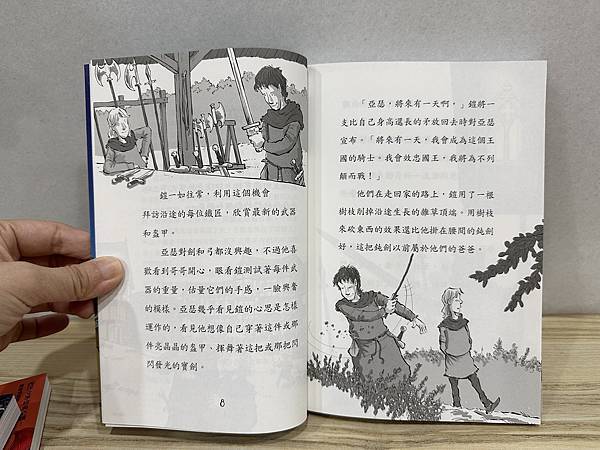 小學三年級的小小咪看到這套亞瑟王,就主動說她想看。原來是因為家裡有一隻亞瑟王的模型,讓她對亞瑟王的故事深感好奇。其實小咪媽咪也沒看過亞瑟王,因此這次也順道一起體驗這場中世紀的傳說冒險故事,也頗為新奇!