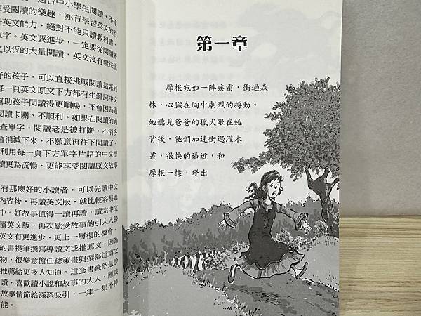 排版跟中文很相近,較困難的單字在下方有註解,能省去頻繁查字典的時間,增加閱讀意願。即使看不懂的句子,也能翻到前面中文頁來對照呢!
