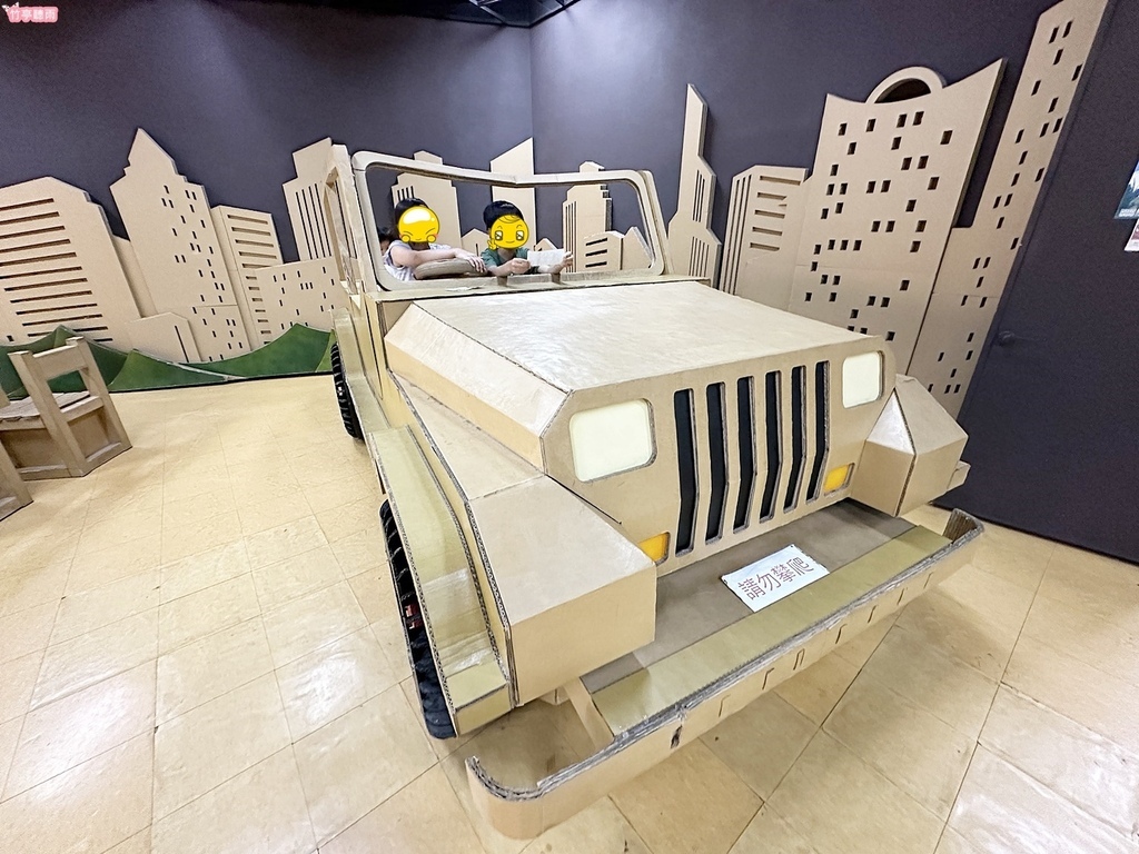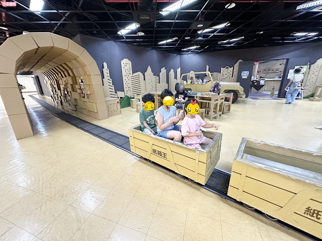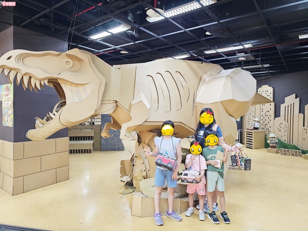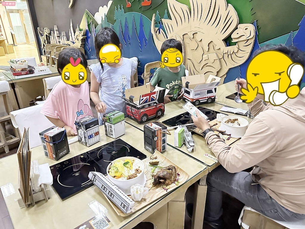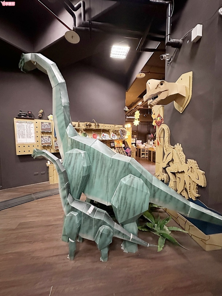 還有紙箱做的巨大恐龍、交通工具,到處都好拍,也有紙箱嚕嚕車跟搖搖馬、紙箱廚房辦家家可以玩呢! 根本就是親子餐廳的感覺啦!