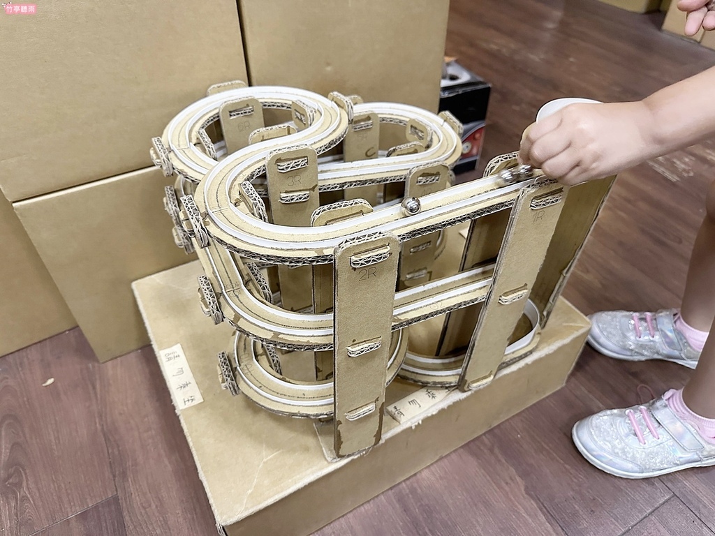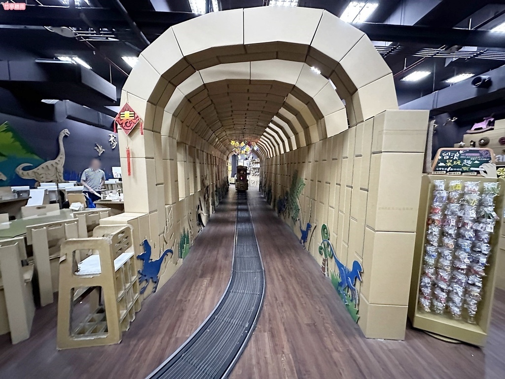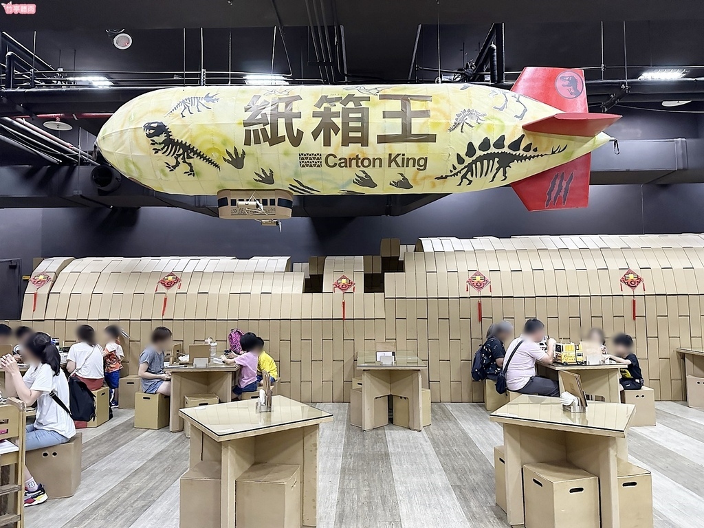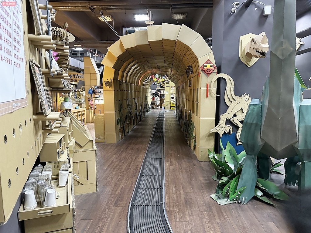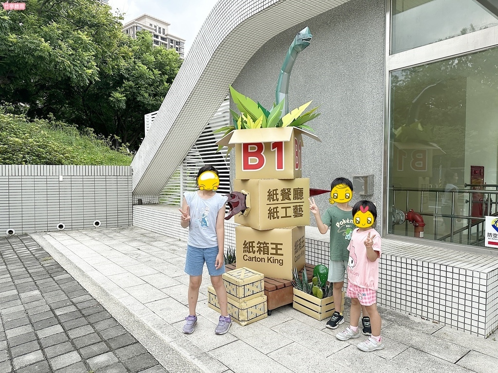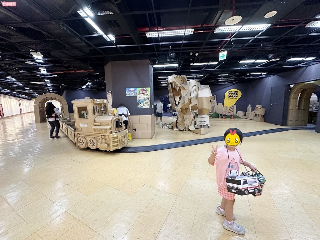 還有紙箱做的巨大恐龍、交通工具,到處都好拍,也有紙箱嚕嚕車跟搖搖馬、紙箱廚房辦家家可以玩呢! 根本就是親子餐廳的感覺啦!
