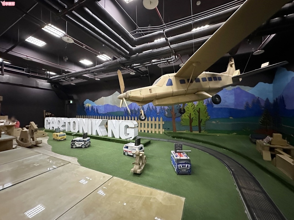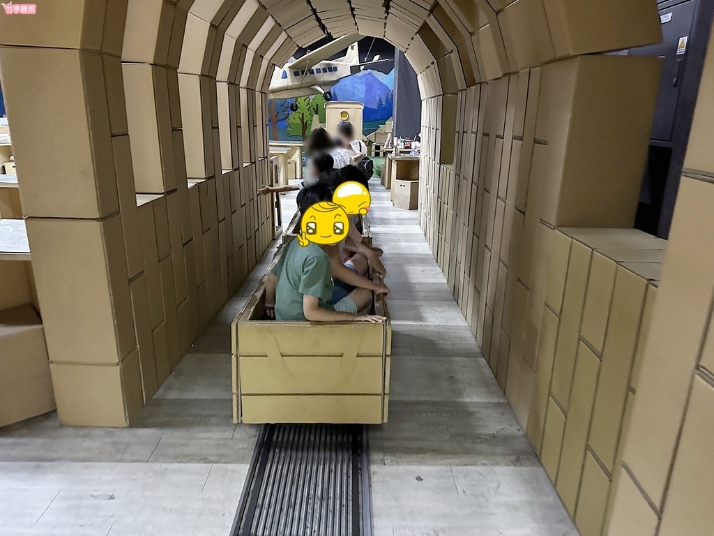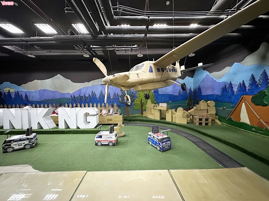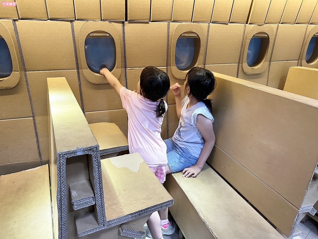 大飛機也是紙箱做的,地上還有交通工具嚕嚕車跟紙做搖搖馬可以玩~餐廳另一邊靠近紀念品店還有紙做的化妝台和廚具組,但一直有人玩就沒拍到照。