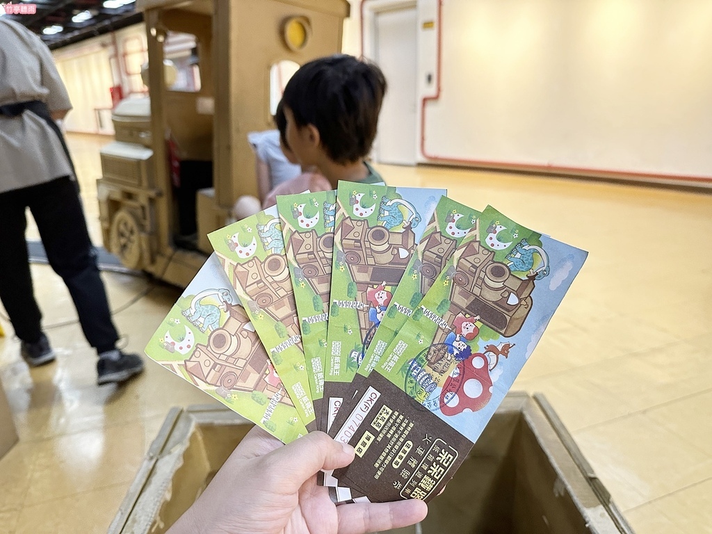 畢竟是主題餐廳,一家五口吃一餐還蠻貴的...花了2000,拿了10張小火車券ORZ 三寶們飯前飯後共搭了兩趟,剩下的想說以後去紙箱王本館搭。