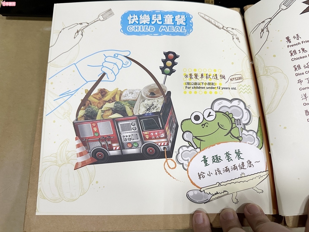 兒童餐除了送的大車車盒子與紙箱小玩具外,餐點其實略為空虛? 菜冷冷的。