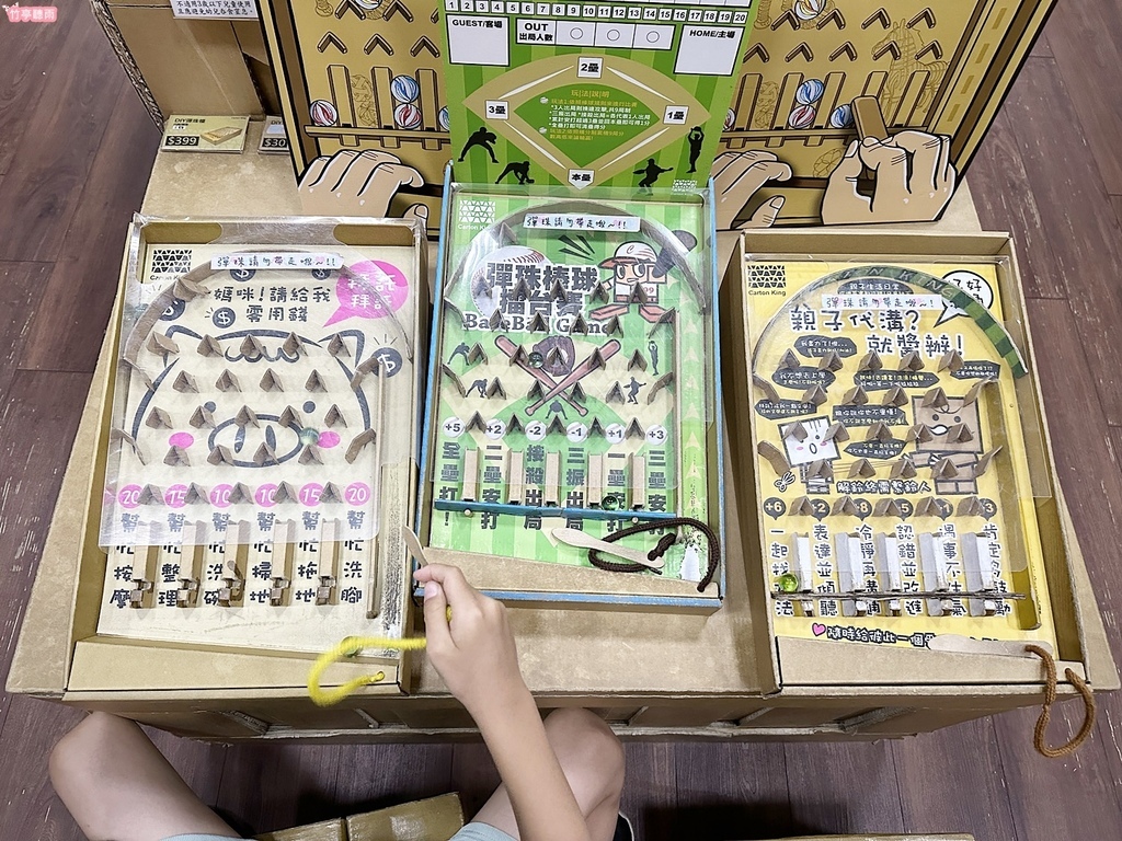 店內也有一些紙做的傳統小遊戲機可以玩,例如打彈珠、彈珠軌道、紙做的迴力車等等。