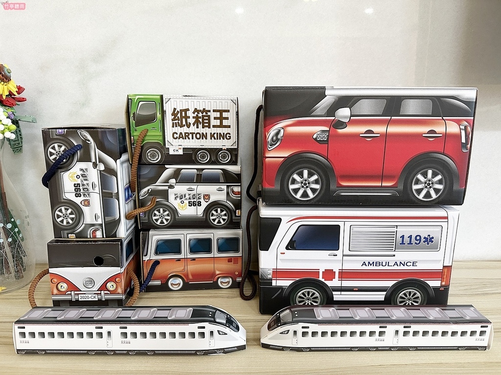 兒童餐喜歡車車的小小孩應該很愛,因為有手提的車車造型手納紙箱,車款隨機供應~