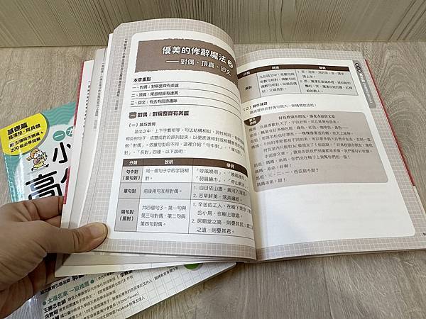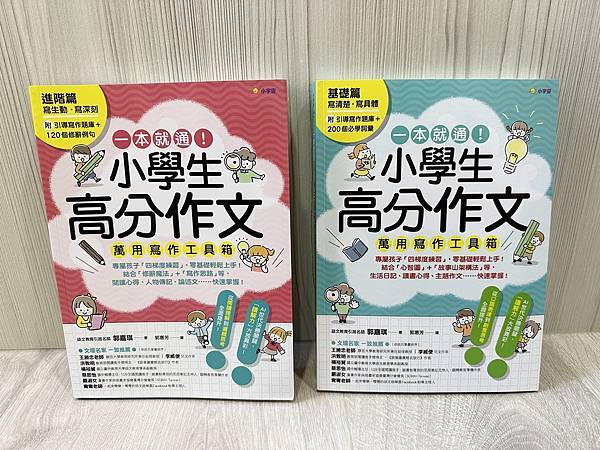 這兩本書對小學生學作文來說是很好用的工具書,按照難度分成基礎篇和進階篇,基礎篇培養觀察力、學習常用詞彙、了解文章基本結構、學會描寫人物、練習視角轉換,看完其實就可以寫出完整的一篇文章。進階篇則是教更多元的修辭方法,以及一些深入的學習法,例如換位思考、經驗聯想、多角度整理觀點,讓文章除了措辭優美外,論述也更有深度與條理。