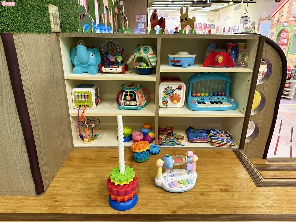 沙坑區外有一櫃的益智玩具,適合喜歡靜態遊戲的小朋友。