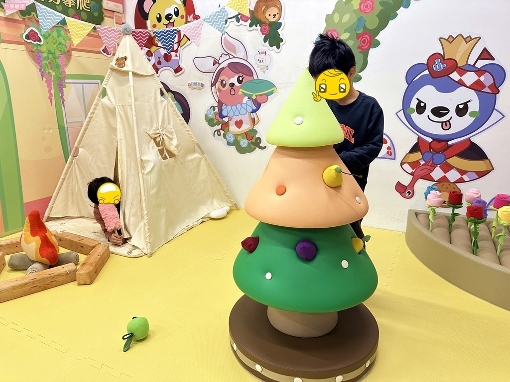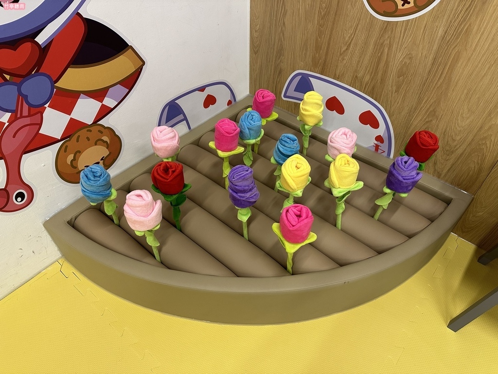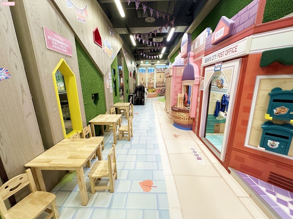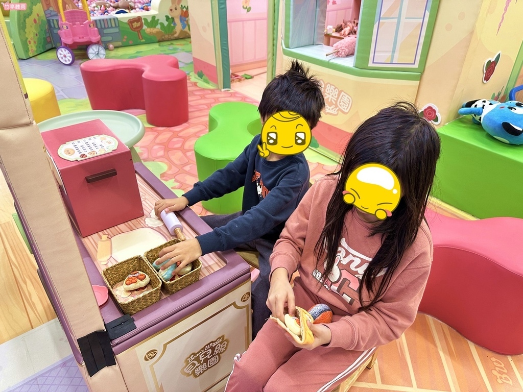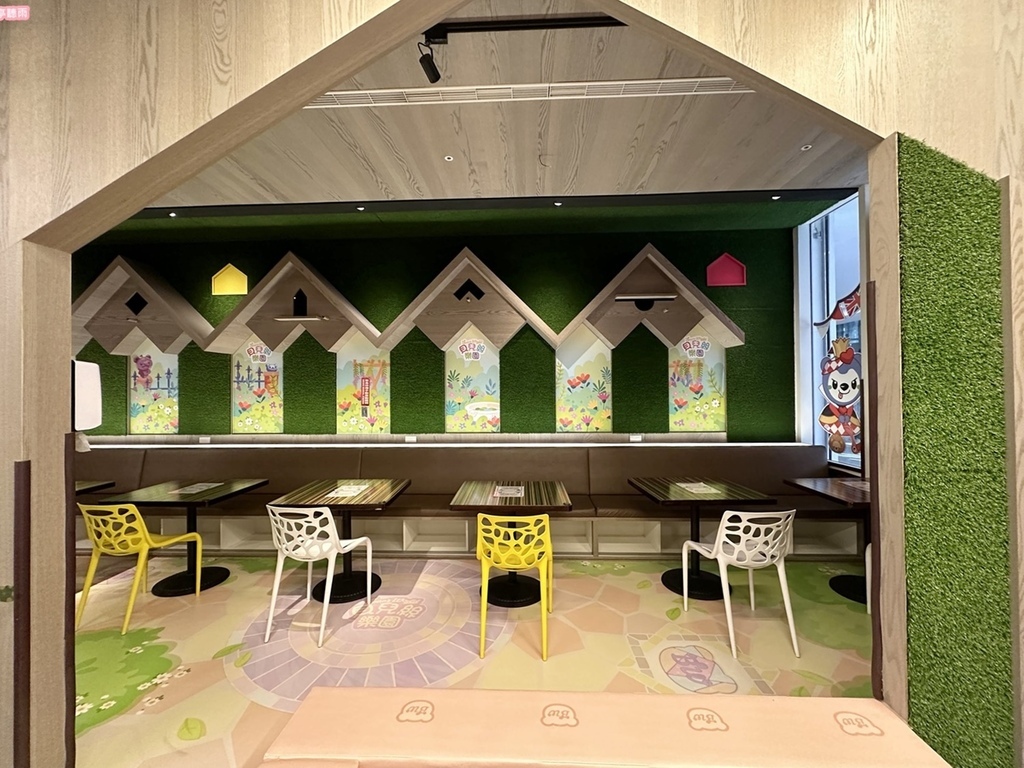 綠色牆面旁的座位是屬於浪漫花園餐廳,可以點餐坐在裡面吃。開放式的空間讓吃飽坐不住的小朋友可以先出來旁邊玩,家長也能看到~