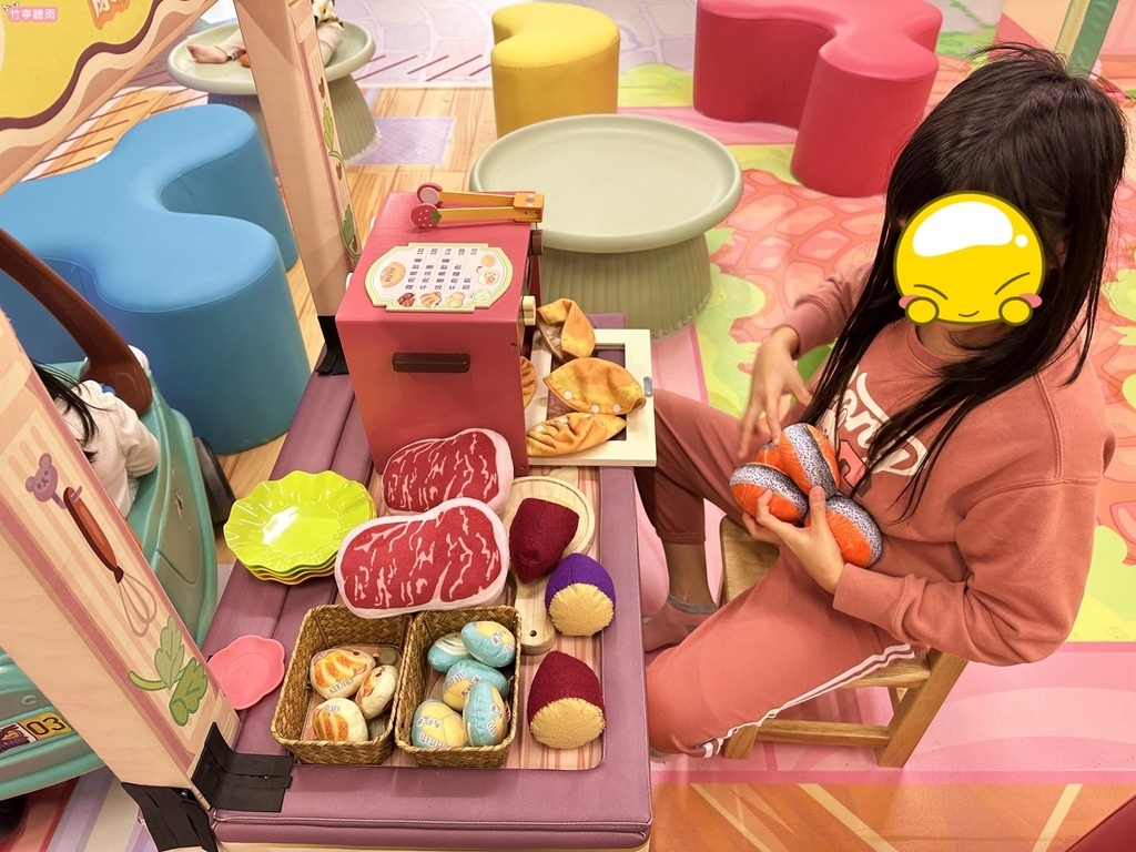 餐車區後面有一間小屋,裡面有很多粉嫩夢幻的蛋糕與甜點,還有洋娃娃跟辦家家玩具,讓人少女心爆發也想跟孩子一起玩~