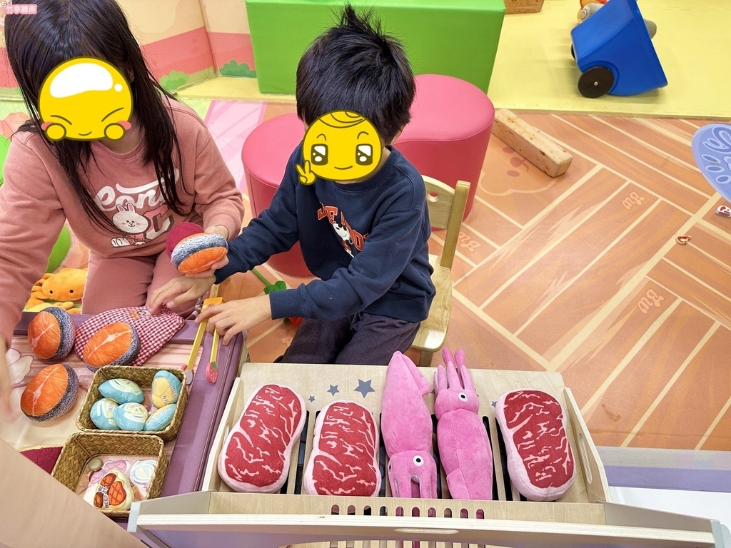 還有烤箱可以烤地瓜、肉排、圓形鮭魚...軟軟的食物逼真又可愛,玩到捨不得走。