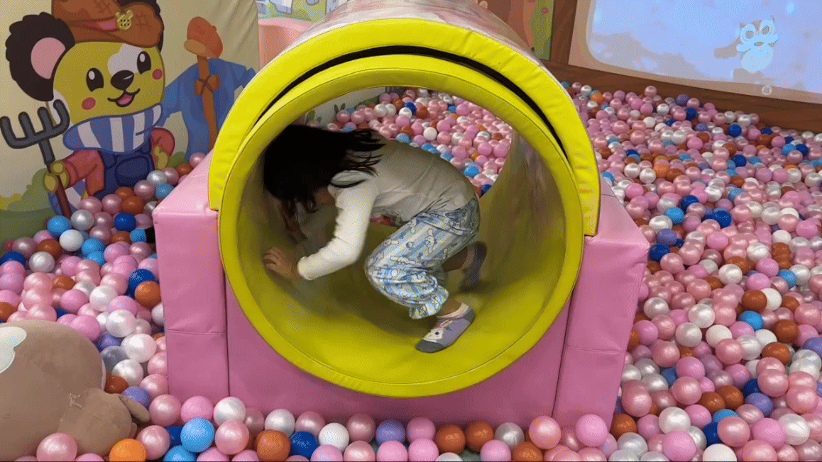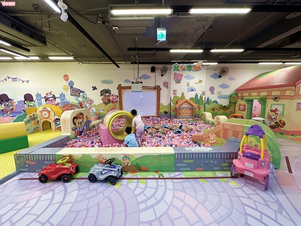 接著來到小朋友們熱愛的球池區,這裡有迷你溜滑梯、感應式互動螢幕和最受小朋友歡迎的倉鼠滾輪~