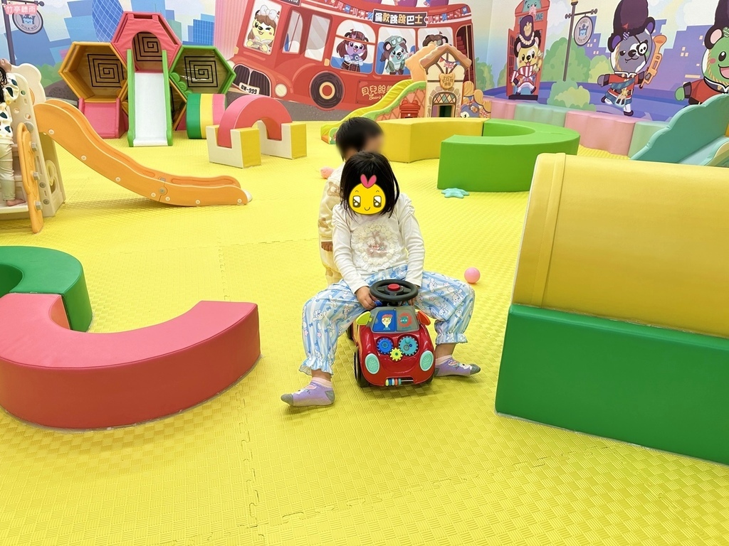團團看到照片問她怎麼沒玩到這裡,因為她超齡啦~這裡是給2歲以下小北鼻玩的區域,跟大孩子隔開比較不怕被碰撞。