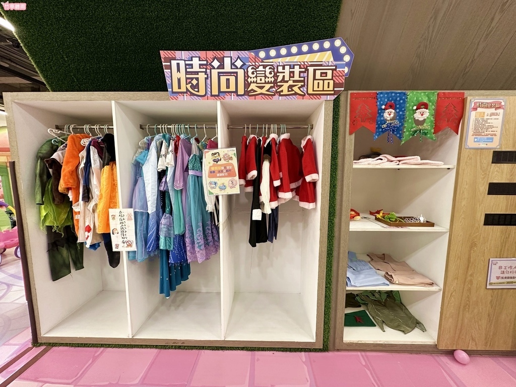 這區有聖誕裝、公主裝跟角色扮演服,還有頭飾與魔法棒、頭巾等等,可以玩變裝遊戲。