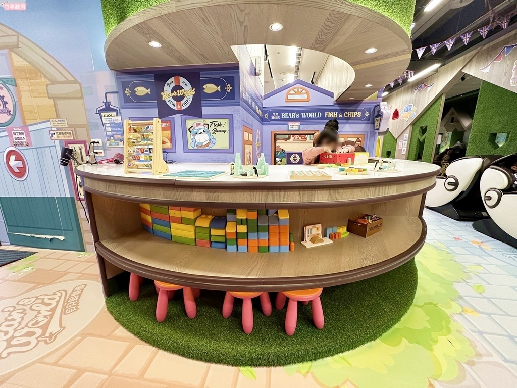 對面的炸魚薯條店外側也有積木跟桌遊,真是善於利用每一寸空間啊!