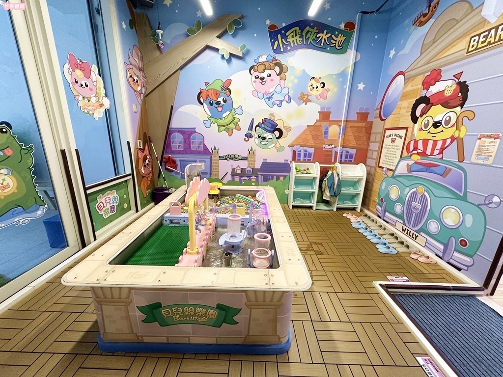 來到貝兒絲水池區令人眼睛一亮,有一台水池遊戲桌,可以穿上拖鞋與防水圍兜以免弄濕,旁邊也有吹風機。