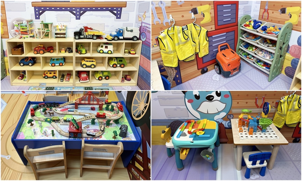 這間車廠裡面有跟車子相關的各種玩具,車車控們應該會很喜歡~