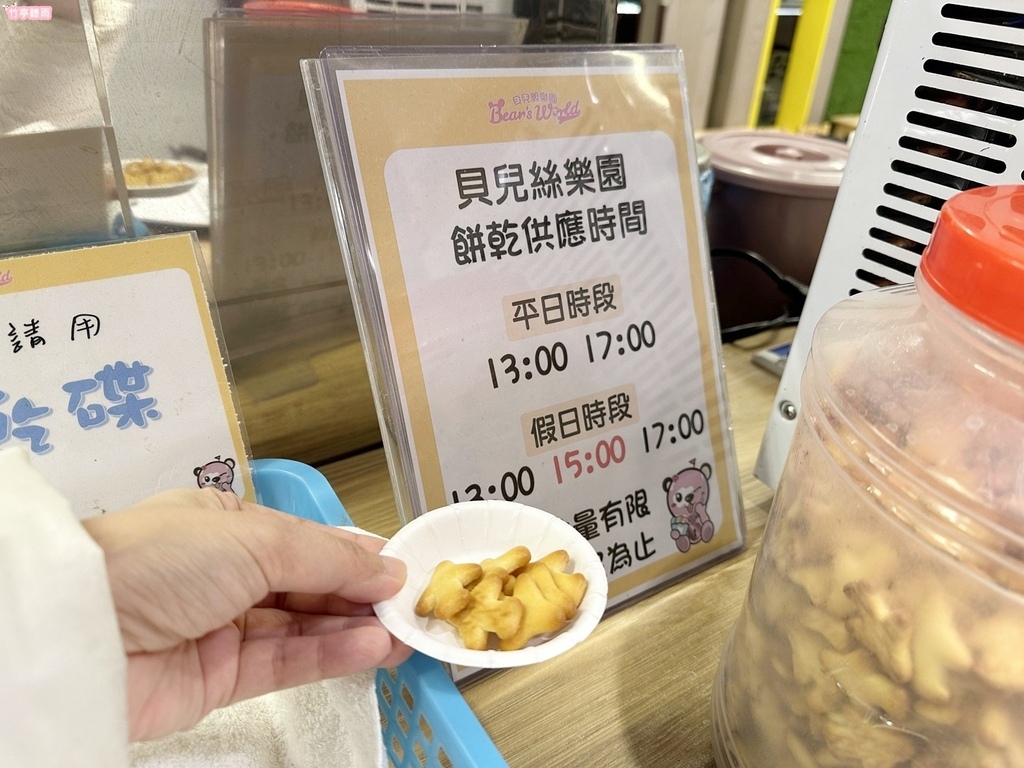 貝兒絲很貼心的地方是在裡面玩還有飲料喝(也有飲水機)、小餅乾可以吃唷! 無論是小朋友玩累了或口渴了,都能洗洗手來稍作休息。
