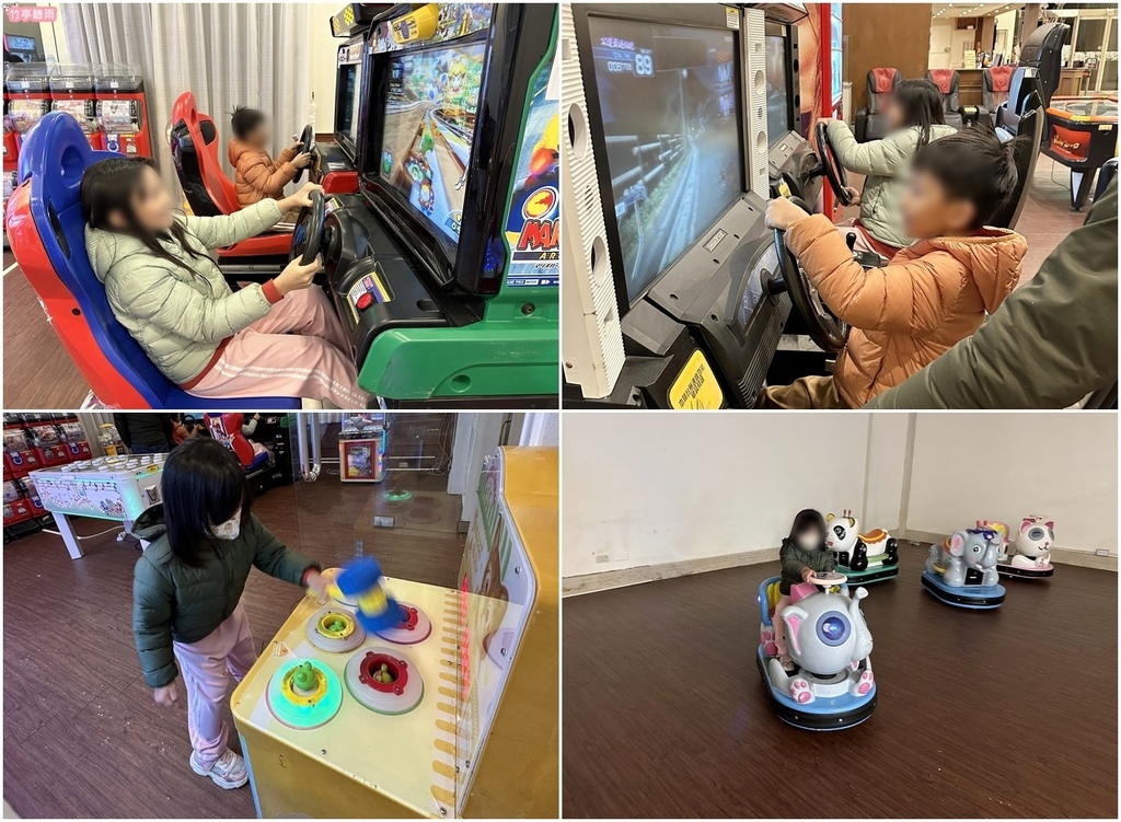 我們第一天晚上回房前讓小朋友來這邊玩了一會兒,玩賽車電動、打地鼠跟開電動車,他們就很開心。
