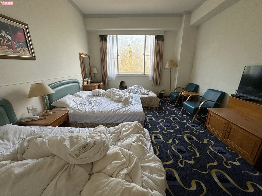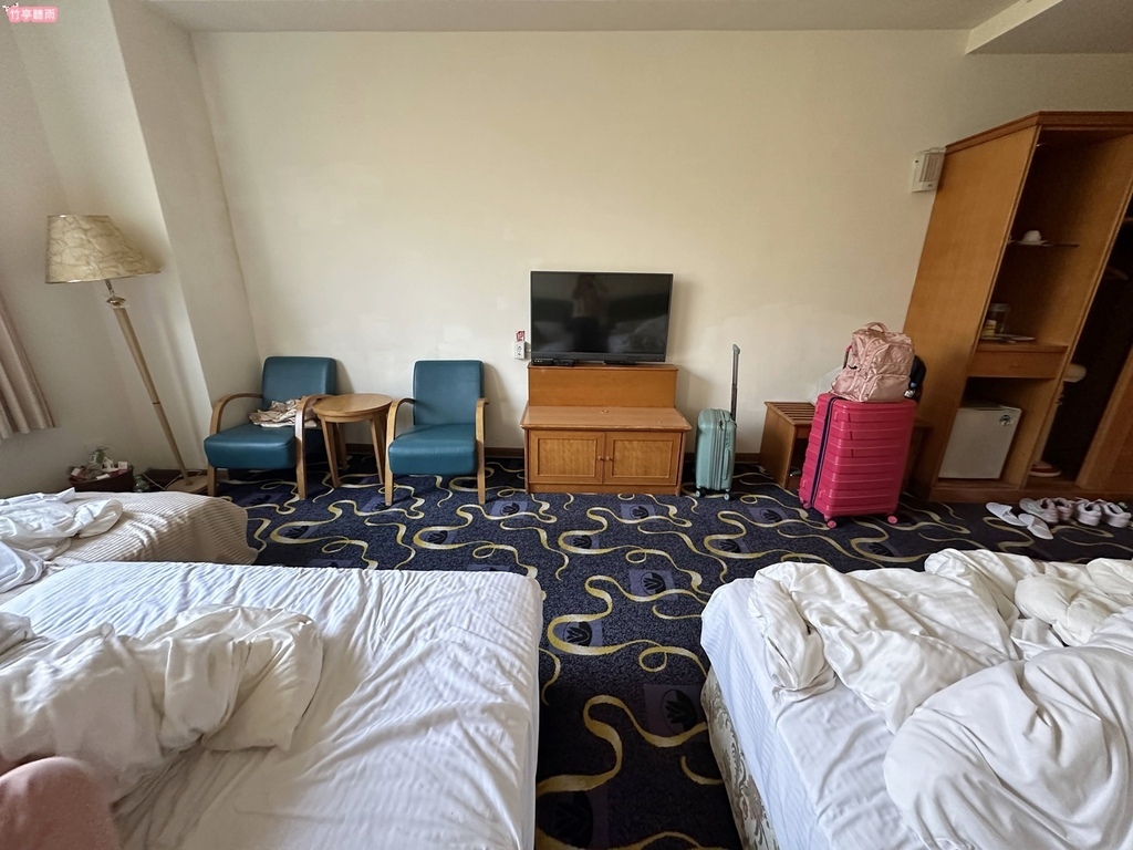 值得一提的是兩張雙人床維護的還不錯,之前住過舊翻新的飯店但床沒換的,腰部支撐不夠力會凹陷,讓人睡得腰酸背痛,這裡的床沒有這個問題,還蠻好睡的。
