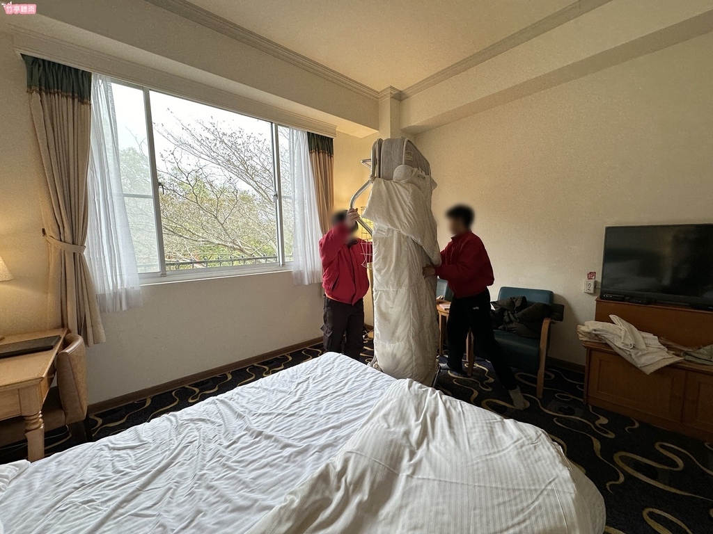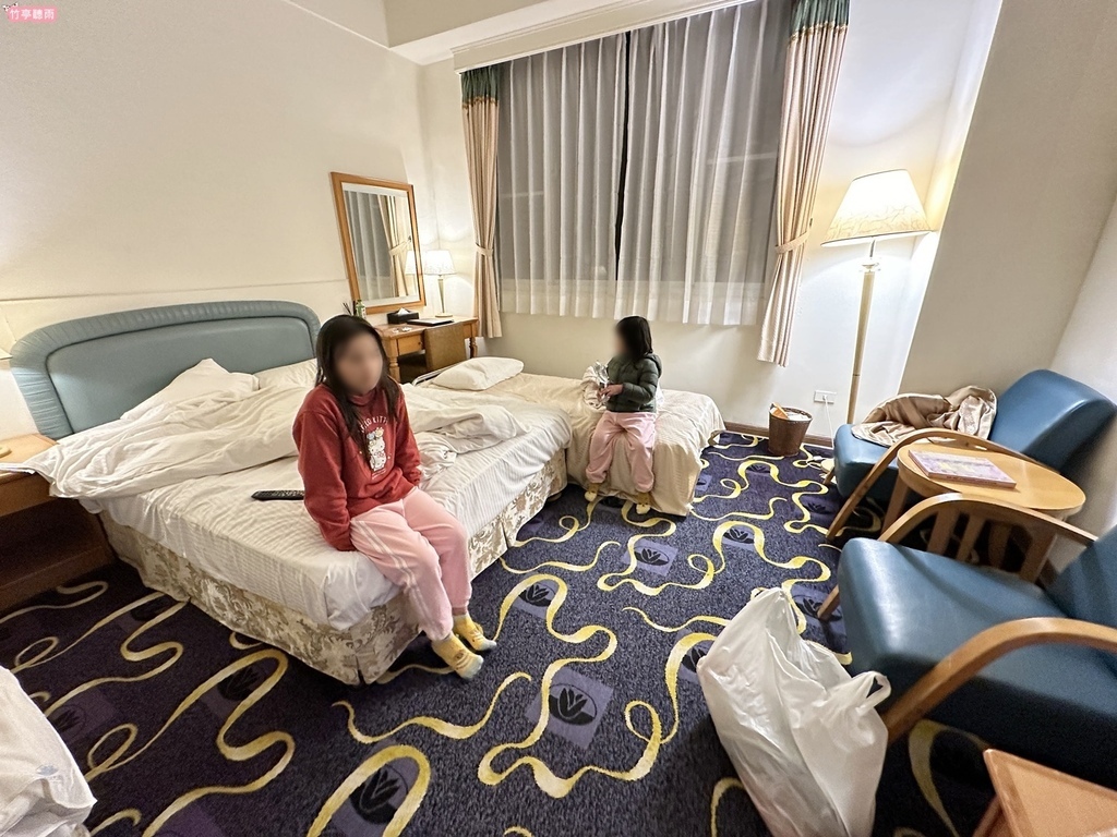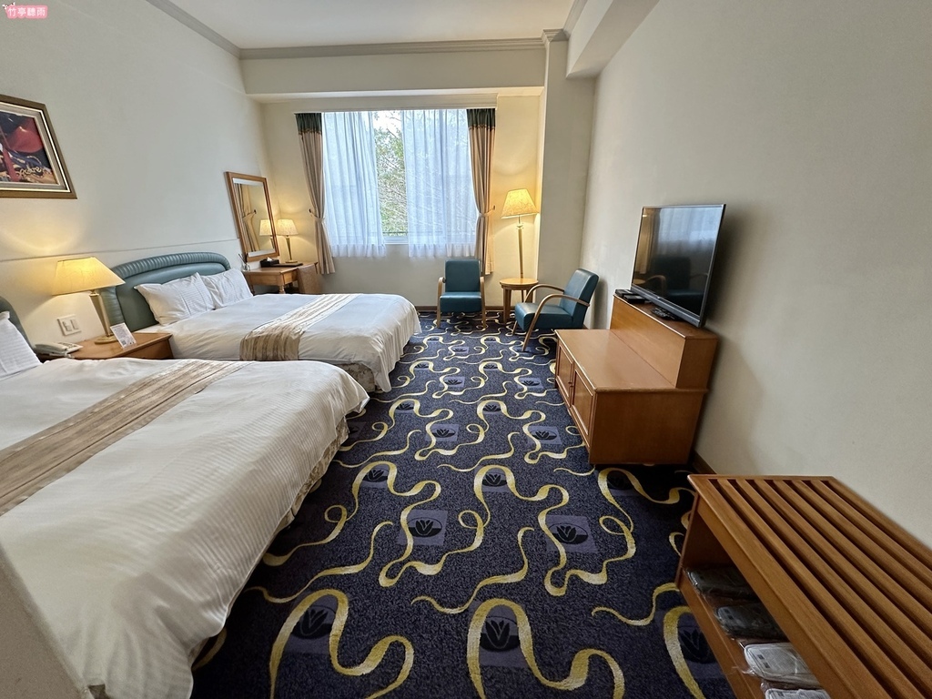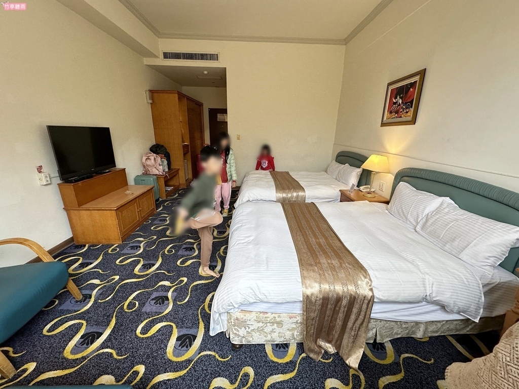 我們住的是四人房,位在西湖渡假大飯店本館。園區入口還有一棟松園會館,都是雙人房,兩館之間有飯店接駁車可以搭,不過我們自行開車所以沒用到~住宿的話兩天都可以停車,第二天也可以停到晚上11點都免費,相當佛心。