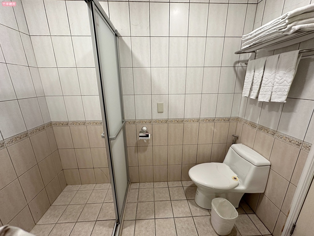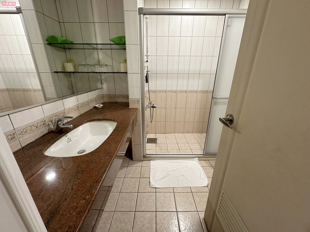 浴室不新,但整理得蠻整齊,也有乾濕分離,不會半夜上廁所腳弄濕。