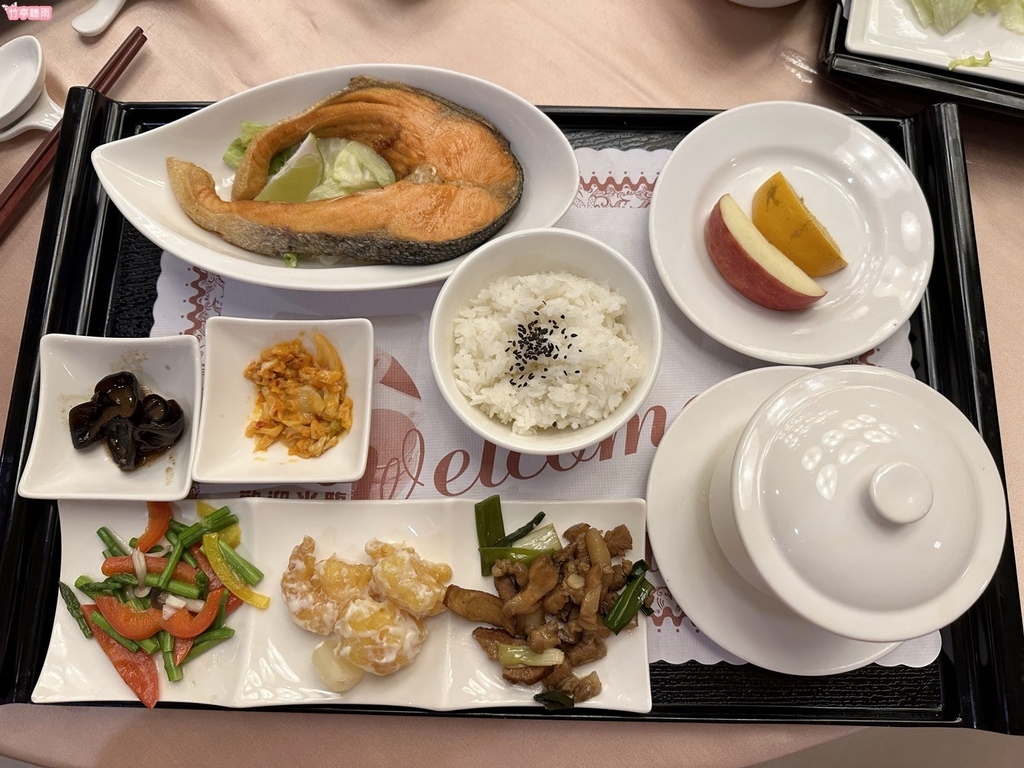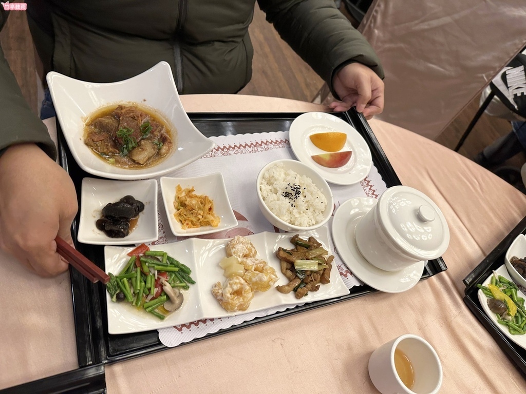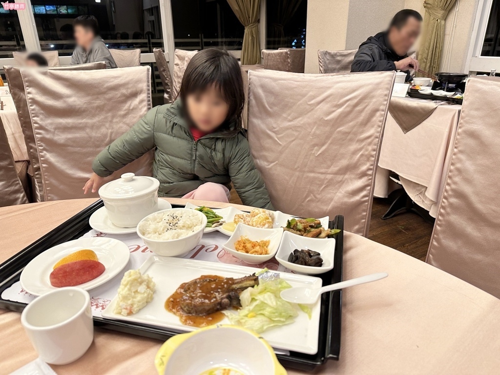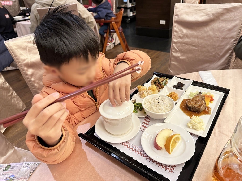 每個人都有一份套餐,有飯、湯、小菜們、主食跟水果,對小朋友來說份量有點多,對大人則算是精緻剛好。小孩們選擇的是羊小排~