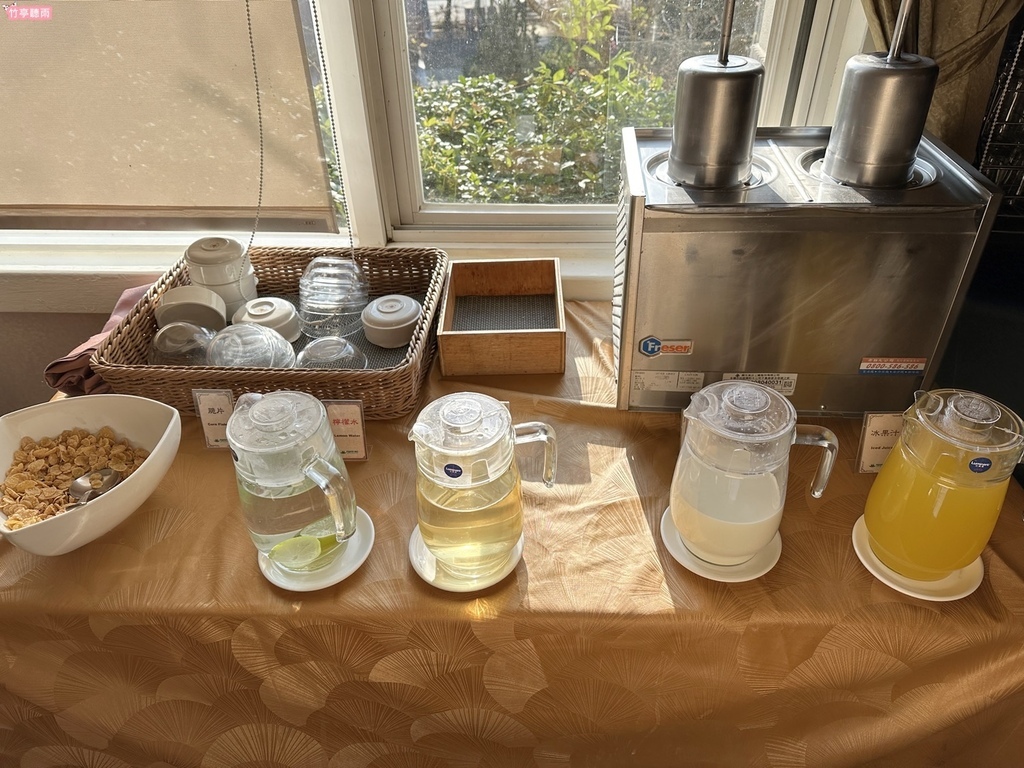 早餐是自助buffet的型態,飲料有咖啡、鮮奶、豆漿、柳橙汁、檸檬水等。