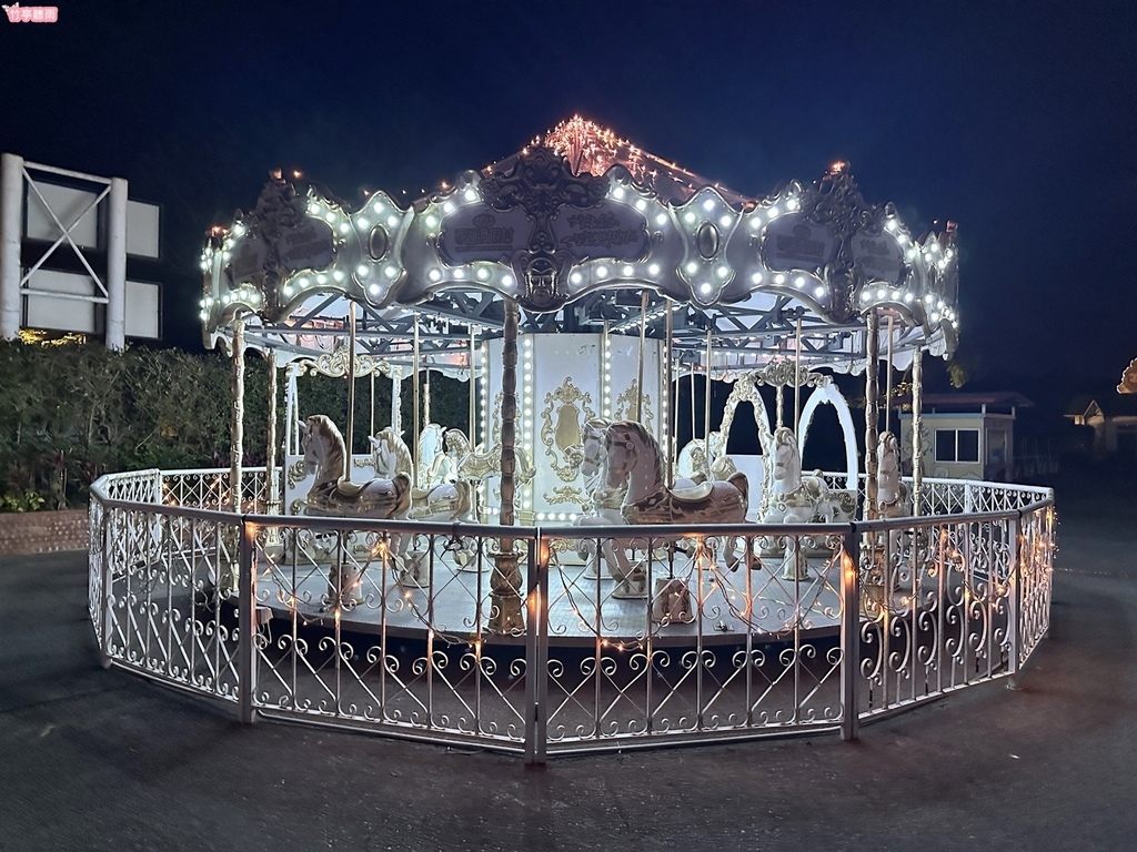 白金音樂馬車也打上了燈光變得很唯美,小孩們看到都好想搭,但夜間沒有營業,只到白天17:00~