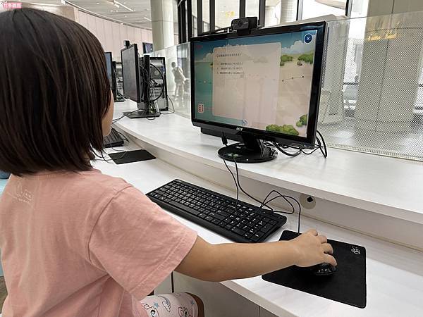 服務台可以借電腦玩動物遊戲,但要三年級以上,一次30分鐘,16:50結束。
