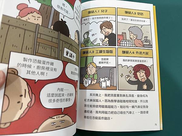 「這套很好看! 當你以為犯人是這個人時,結局卻出乎意料~」小小咪推薦 - 結合推理、科學、漫畫故事的紅衣鼻屎超人系列,畫風幽默劇情又帶著一點懸疑感,相當引人入勝,而且事件的真相都跟科學原理有關,閱讀有趣故事的同時,還能學到科學知識,真的蠻推薦的!
