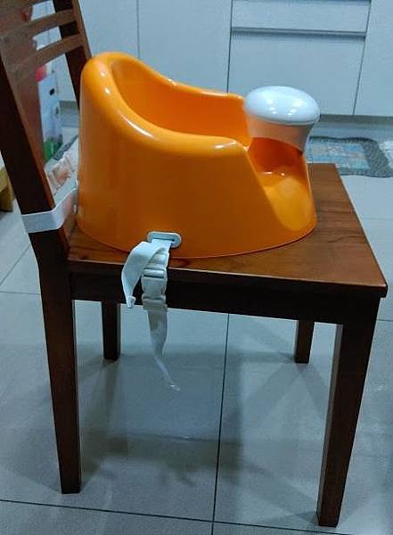 當我拿出幫寶椅要給4M的弟弟坐時,她跑來說這是她的椅子~然後就被當成增高墊使用了XD"