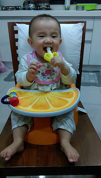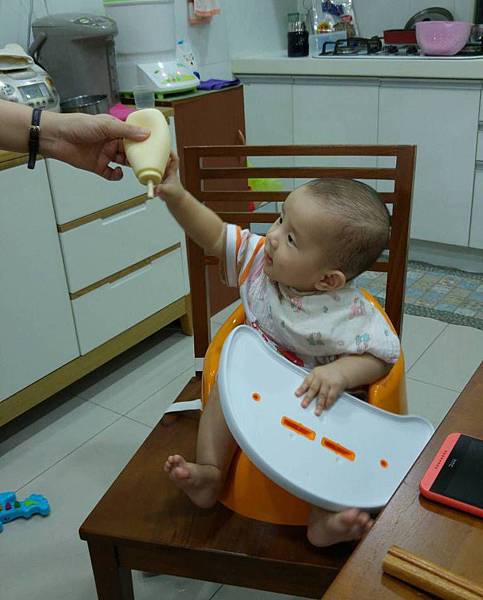 用來餵副食品也很方便! 餵久了一抱上椅子她就知道有好吃的來了,嘴巴匝匝響XD