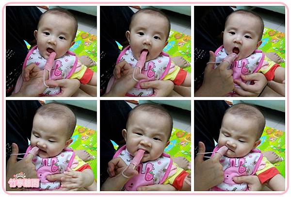 照她們教的方法-用藥局買的2x2紗布纏住食指真的不太好刷,動不動就紗布脫落或是被咬歪要重新纏。而且紗布消耗量大,用完即丟也有點不環保。