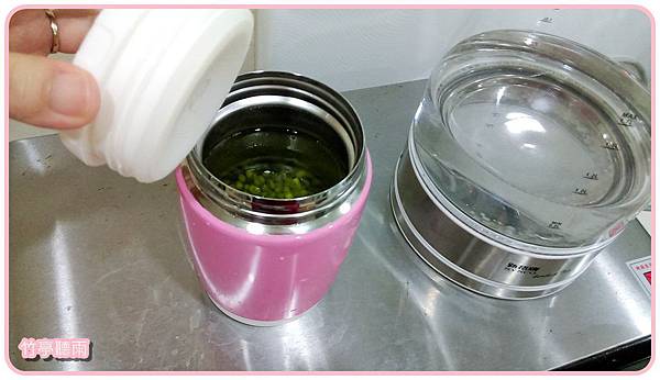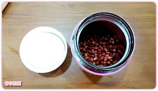 紅豆還蠻難熟的,我倒了1/2量米杯的紅豆,一半用膳魔師,一半用魔力坊的燜燒罐來煮,看看何者會成功。