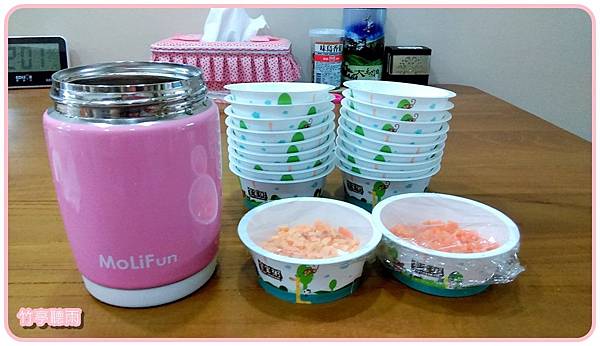 題外話: 田原香的寶寶粥碗用來分裝食材好方便~一碟一種材料,用剩的包保鮮膜冰起來很方便。