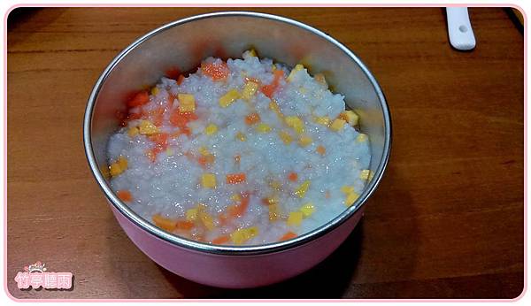 寶寶副食品不宜加調味料,白粥之外加一些蘿蔔蘋果等天然食材可以增加粥的甜度。