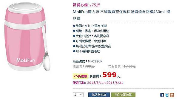 外出時,以造型考量的話我會比較想帶粉紅色的燜燒罐XD 會讓人心情很好~~